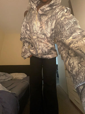 This camo zip hoodie blends warmth, durability, and oversized comfort so you feel ready for work, errands, or nights out with effortless style.